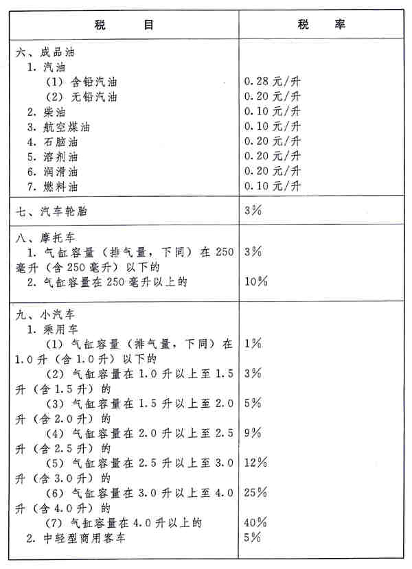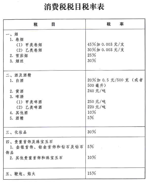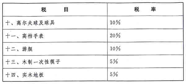 第二條 消費稅的稅目、稅率,依照本條例所附的《消費稅稅目稅率表》執行。